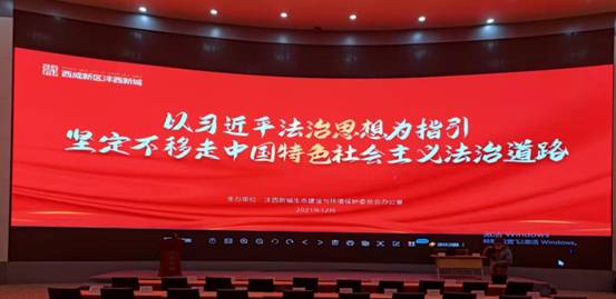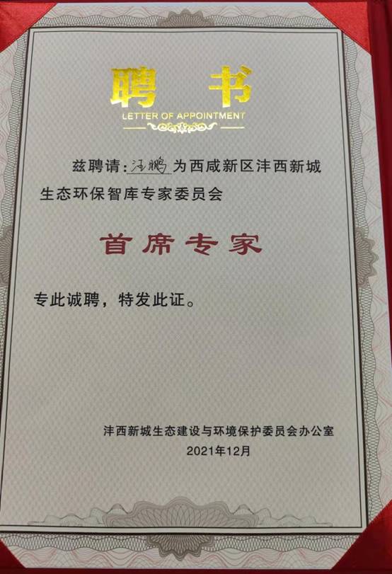 2021年12月3日,西咸新区沣西新城生态建设与环境保护委员会办公室举行“我为群众办实事—环保普法宣传六进”活动,美高梅娱乐场 刑法教研室汪鹏博士受聘为“西咸新区沣西新城生态环保智库专家委员会首席专家”,沣西新城生态环境局局长、党组书记赵波为汪鹏博士颁发聘书。