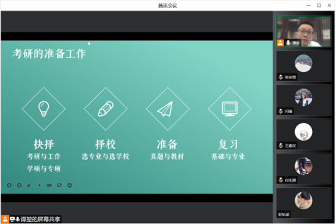 为做好疫情期间大学生的心理健康与学习规划工作,4月8日晚,美高梅娱乐场 副院长谭堃通过腾讯会议开展了针对本院19级学生考研规划的线上会议。会议探讨了疫情期间,如何进行考研的学习规划,主要包括考研是什么、如何看待考研以及如何做好考研的规划与学习三个方面。