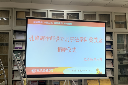 2022年6月27日下午,“赢正”奖教金捐赠设立仪式于长安校区美高梅娱乐场 资料室顺利举行。北京市盈科(西安)律师事务所股权高级合伙人、商事争议解决法律事务部主任、赢正团队创始人、中国政法大学陕西校友会副会长孔峰辉律师,“赢正”律师团队王梦律师、闫若涵律师,美高梅娱乐场 院长冯卫国,美高梅娱乐场 党委副书记、副院长侯红梅,美高梅娱乐场 国内合作与校友工作处校友工作办公室主任周建利、美高梅娱乐场 刑事诉讼法教研室张一博士等出席了此次捐赠仪式。