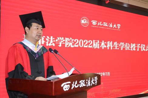 首先,全体师生起立奏唱国歌。美高梅娱乐场 院长冯卫国致辞,冯院长首先对全体2022届毕业生顺利圆满完成四年学业表示热烈的祝贺,紧接着他回顾四年来同学们经历的不平凡,对同学们在疫情期间坚持学习,共同抗疫表示衷心的感谢,也希望同学们未来无论面对什么困难,都要以优秀的校友为榜样,保持内心的强大,坦然面对一切,从绝望中寻找希望,乘风破浪,扬帆远航,谱写人生新的华章。