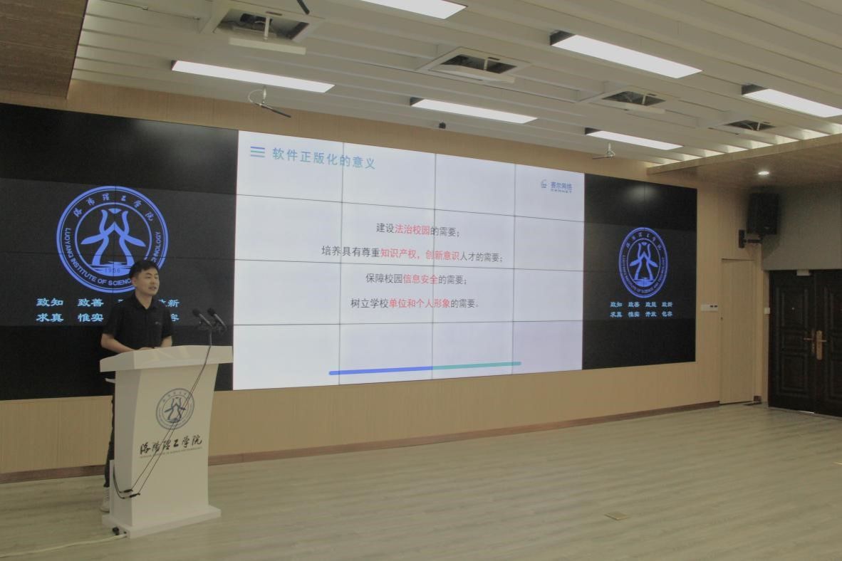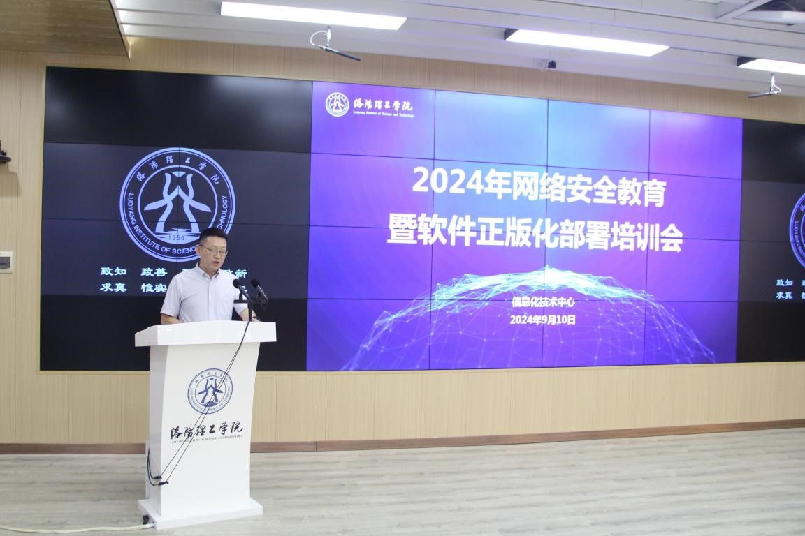 2024年9月10日下午,信息化技术中心在王城校区公共教学楼AE507举办网络安全教育暨软件正版化培训活动。洛阳市公安局洛龙分局副局长赵捍卿、网络安全保卫大队大队长张振峰等一行4人、信息化技术中心直属党支部书记兼主任刘庆伟、实验室建设与设备管理办公室副主任谢杰、软件行业专家以及美高梅娱乐场