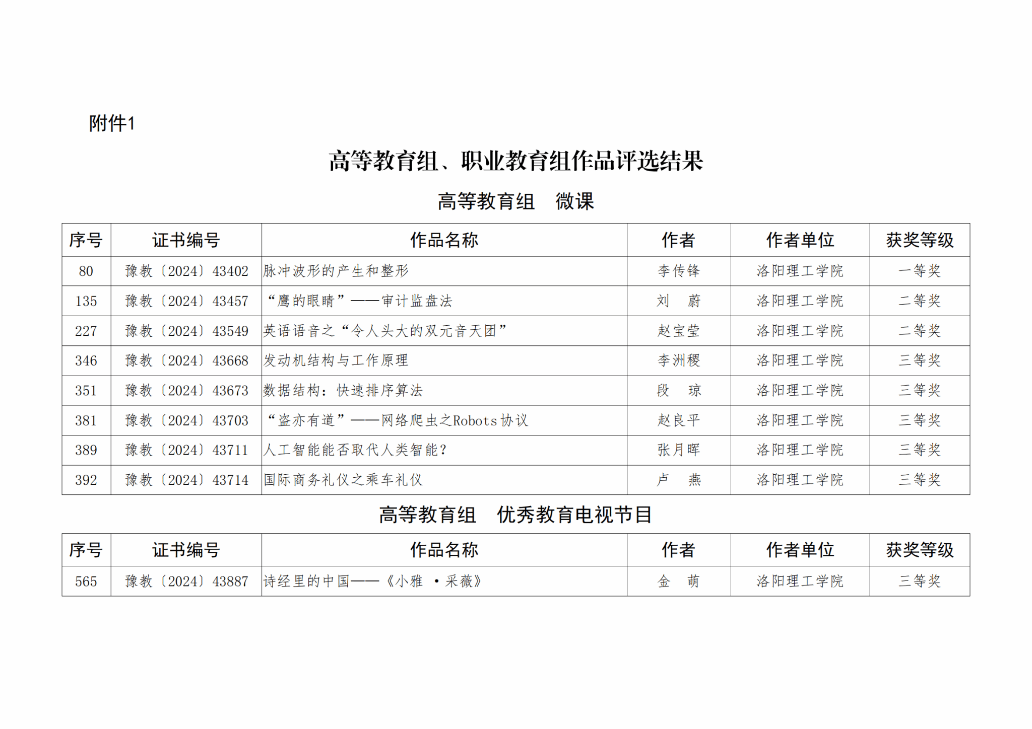 近日,根据《河南省教育厅关于公布河南省第二十八届教育教学信息化交流活动评选结果的通知》(教资保〔2024〕343号)文件通知,美高梅娱乐场 报送的作品中微课获奖8项、优秀教育电视节目获奖1项。