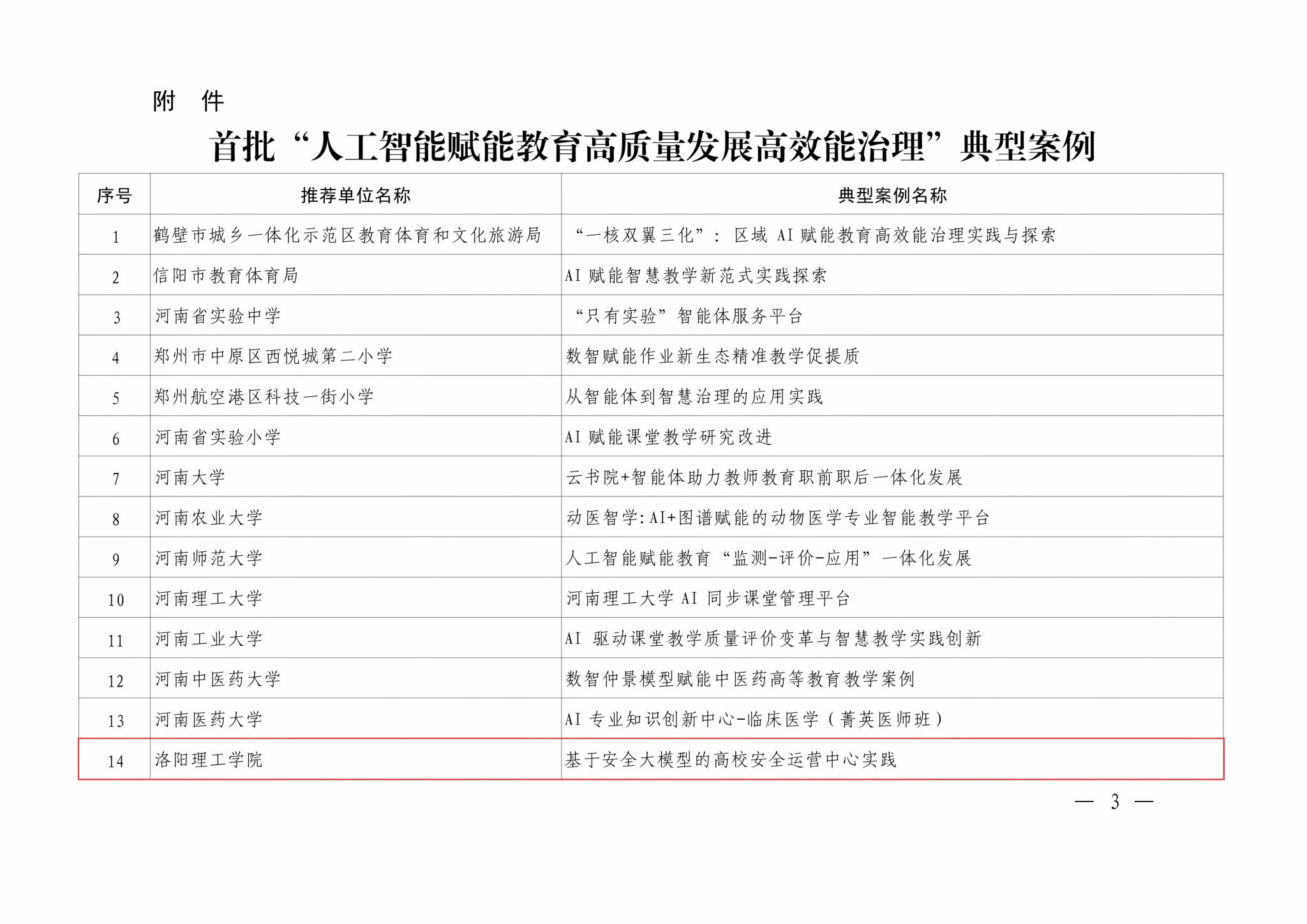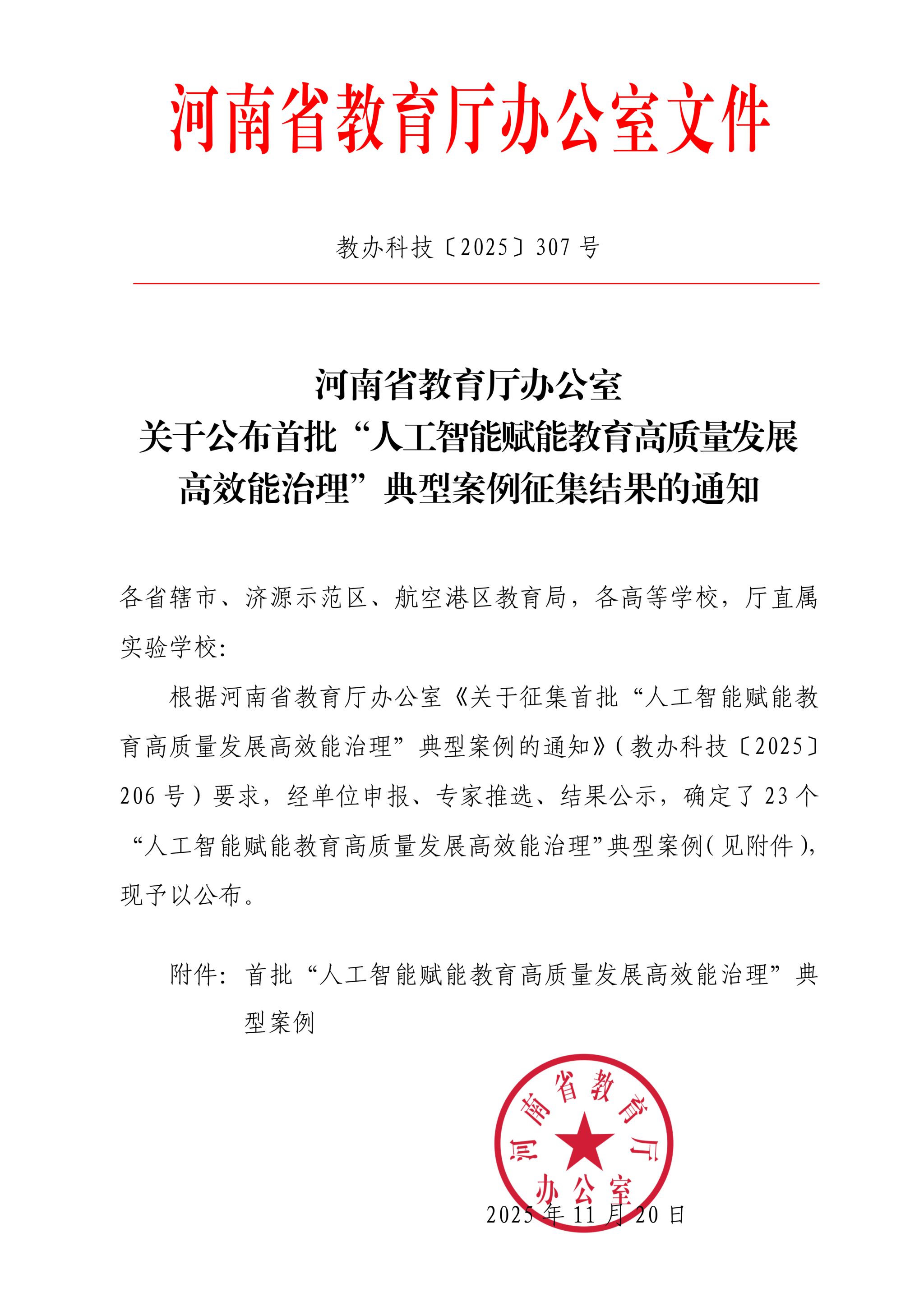 近日,河南省教育厅办公室印发教办科技〔2025〕307号文件,公布首批“人工智能赋能教育高质量发展高效能治理”典型案例征集结果。美高梅娱乐场