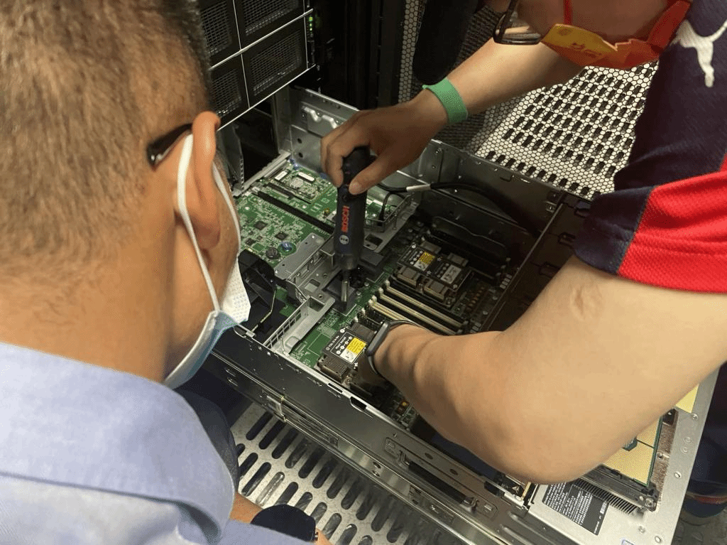 技术人员升级私有云为万兆光网现场