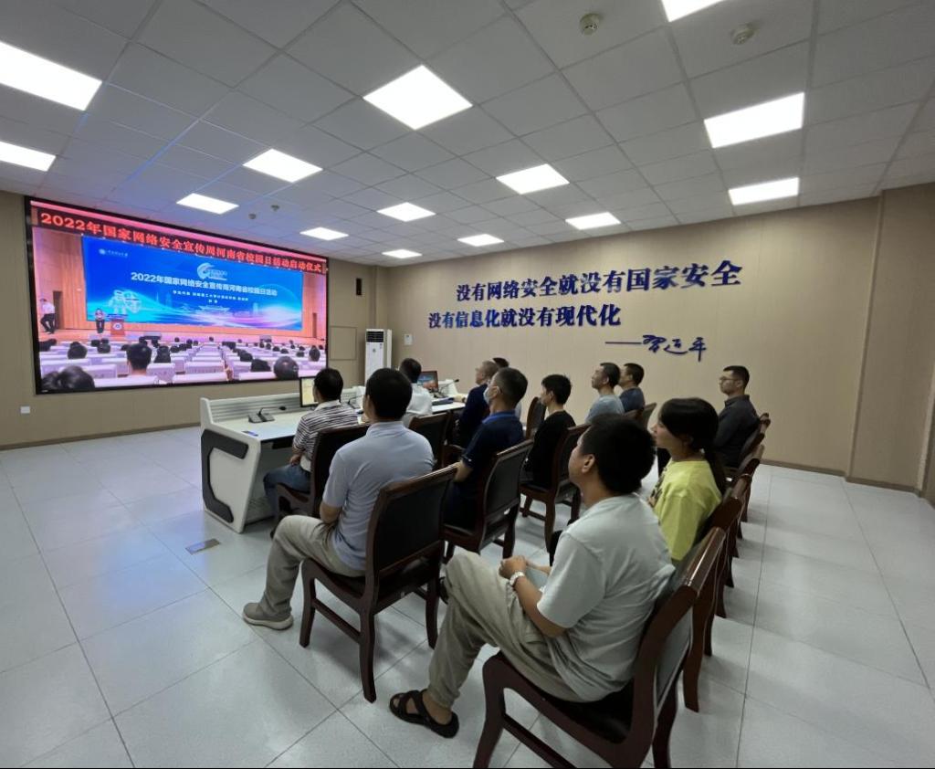 9月6日上午,信息化技术中心全体人员在王城校区图书信息楼607在线收看了2022年国家网络安全宣传周河南省校园日活动启动仪式。
