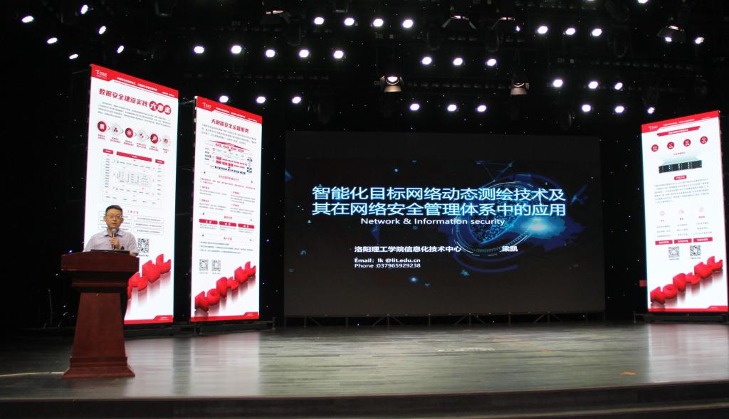 做了题目为“智能化目标网络动态测绘技术及其在网络安全管理体系中的应用”的报告,报告从高校现有安全体系存在的问题、目标网络动态测绘技术、基于SDCA的网络资产管理体系等方面分享了美高梅娱乐场