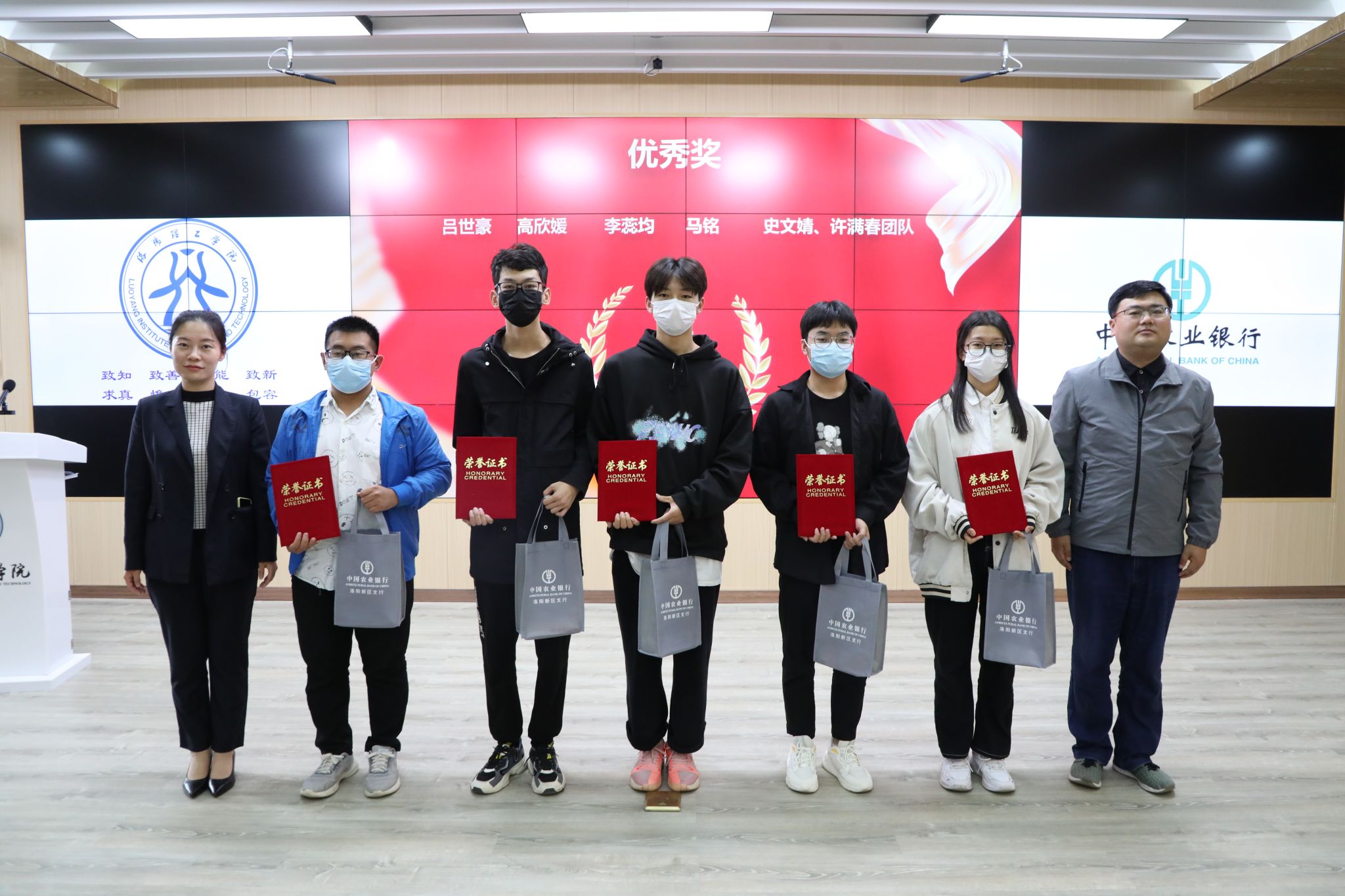 会上,信息化技术中心负责人就本次大赛的有次情况进行了汇报,宣读了获奖人员名单,校领导及中国农业银行洛阳分行的嘉宾分别为获奖的选手颁发了荣誉证书和奖金。