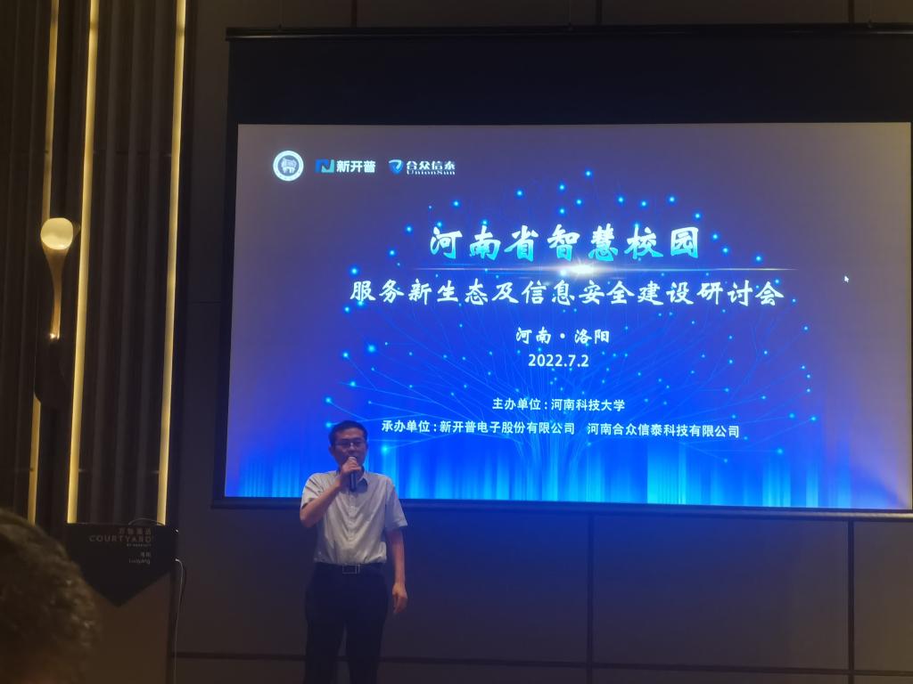 7月2日,“河南省智慧校园服务新生态及信息安全建设研讨会”在洛阳召开。河南省教育厅科技与信息化处副处长麦世奎,新开普电子股份有限公司董事长兼总裁杨维国、河南合众信泰科技有限公司总经理王二涛及郑州大学、河南大学、河南科技大学、美高梅娱乐场