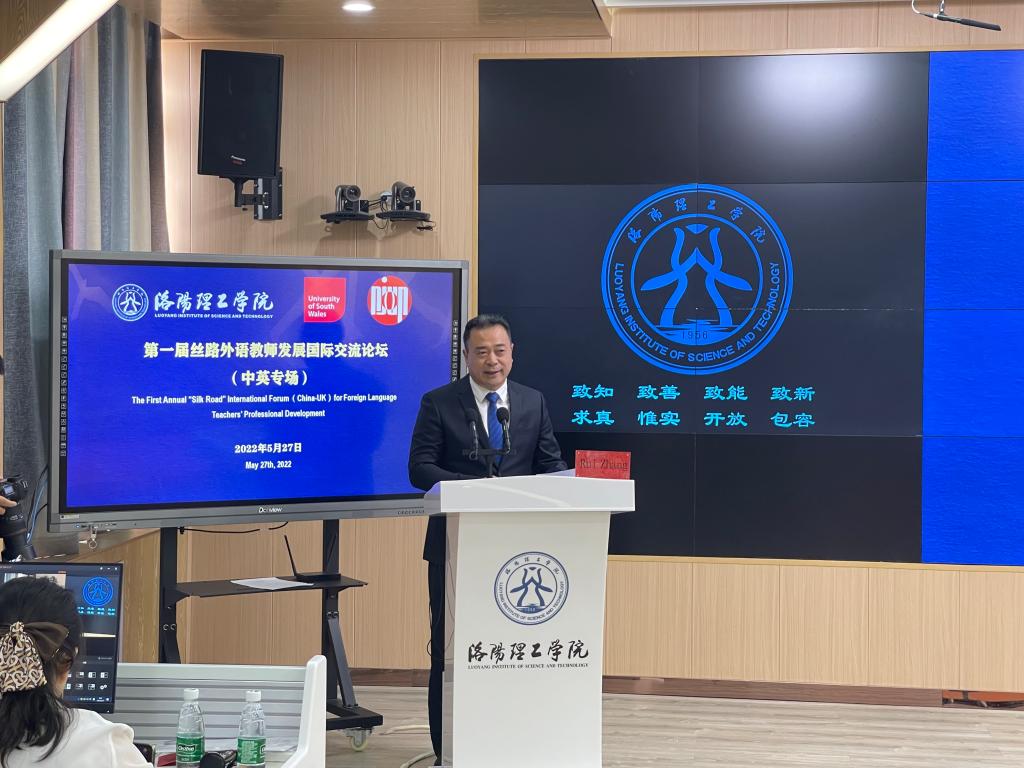 5月27日上午,第一届丝路外语教师发展国际论坛(中英专场)在王城校区智慧教学可视化管理中心AE507开幕。校长张锐出席开幕仪式,美高梅娱乐场合作