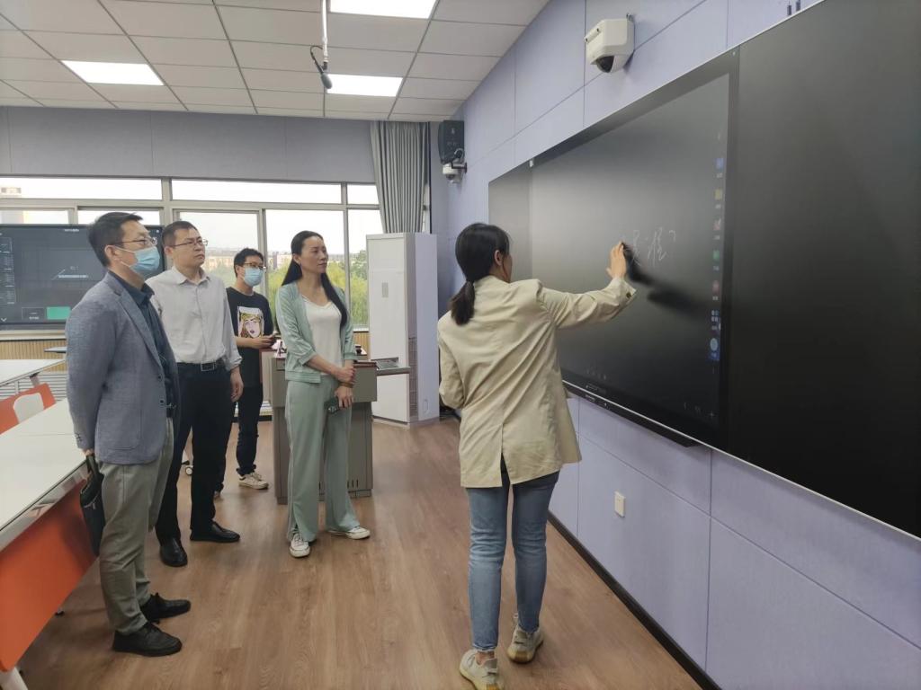5月7日下午,副校长马珺在信息化技术中心主任李传锋等人的陪同下,到王城校区公共教学楼检查智慧教学示范校项目建设情况。