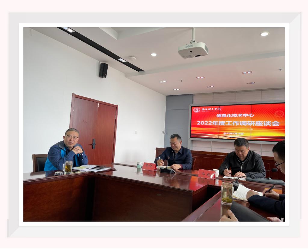 “十四五”发展规划,推进能力作风年建设。3月15日下午,校长张锐在党政办副主任冯彪的陪同下莅临信息化技术中心进行调研座谈。信息化技术中心全体人员参加座谈会,会议由中心书记刘庆伟主持。