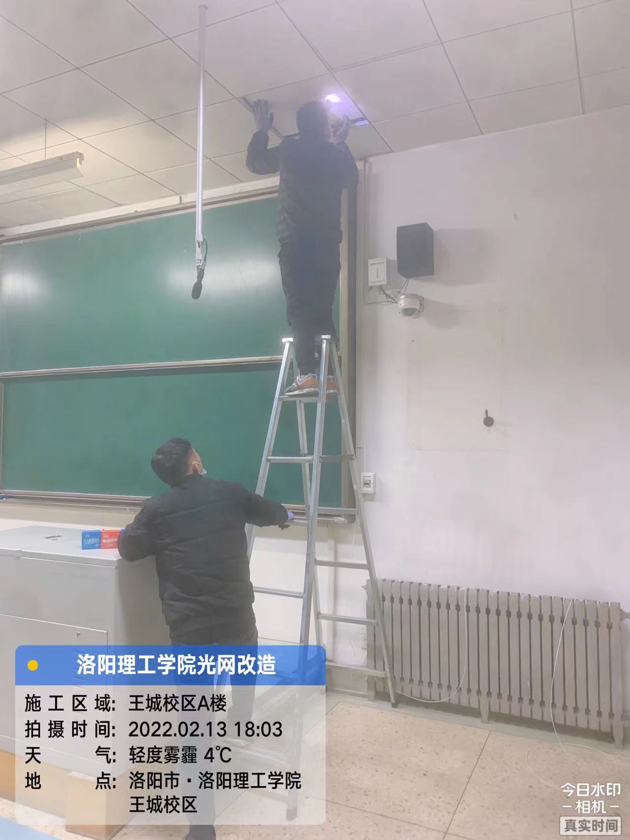 多媒体教室全光网改造项目及智慧教室一期建设项目能够在寒假期间安全、高效、保质保量完工,2月14日上午,信息化技术中心主任李传锋带领相关人员到王城校区公共教学楼现场检查施工进展情况。