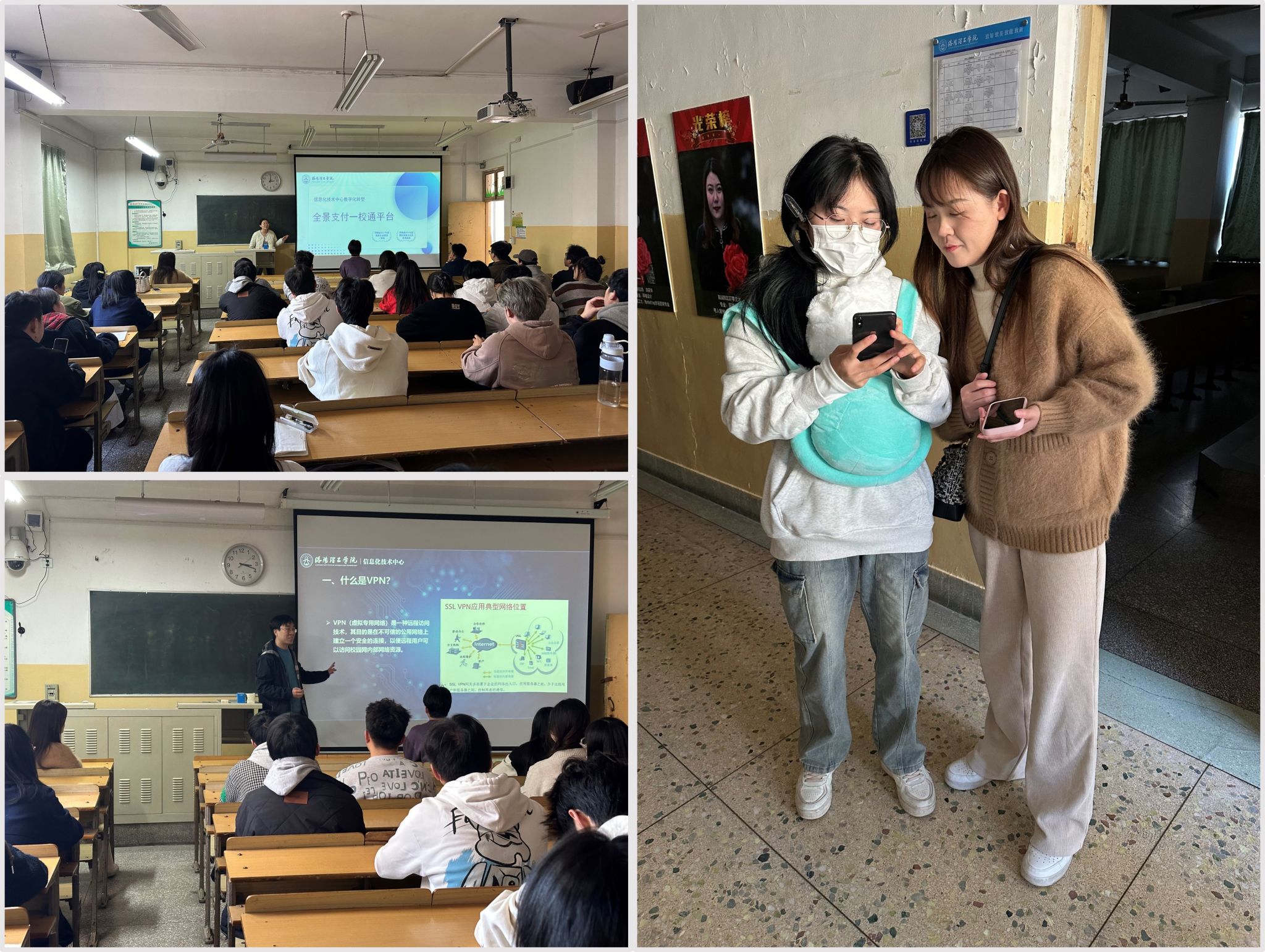 的督导巡课平台、讯飞AI课堂应用、智慧校园信息系统服务平台、全景支付一校通平台等多个平台的使用方法、注意事项等作了详细的演示说明。网络运行部培训人员向师生普及了网络安全相关法规与知识并讲解了常见的校园网问题及解决方法等。之后,培训人员在现场发放了《美高梅娱乐场
