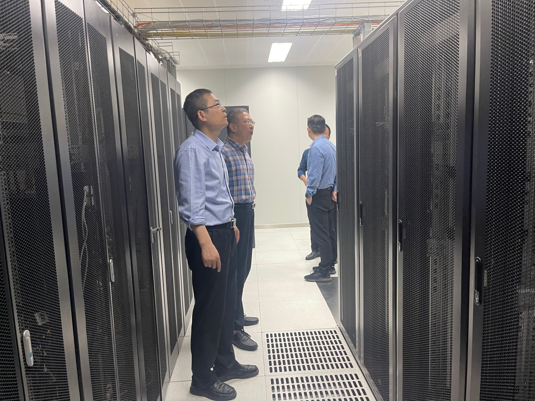 刘庆伟等首先查看了办公区域的电器设备、线缆布局以及消防设备情况,进一步强调了安全工作的重要性,要求责任落实到人,提高安全防范意识;随后,走访了网络、信息中心机房以及UPS设备间等场所。对机房的温湿度控制、消防设施、电力供应等进行了全面检查,并特别关注了UPS设备的运行状态,确保在突发停电情况下,能够保障关键设备和数据的正常运行。