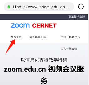 打开浏览器,输入地址:zoom.edu.cn,点击“免费下载”,完成下载并安装。