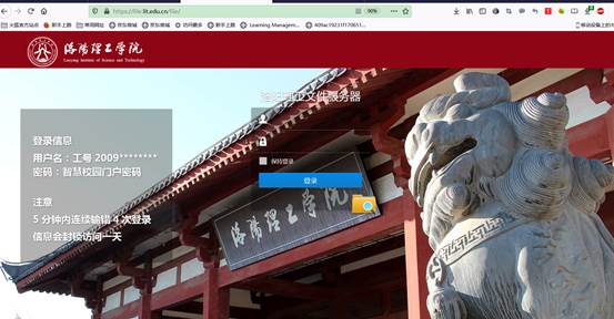 输入登录账号和密码,账号为工号 2009********;密码为智慧校园门户登录密码 (5分钟内输错4次密码将会封锁登录IP一天)