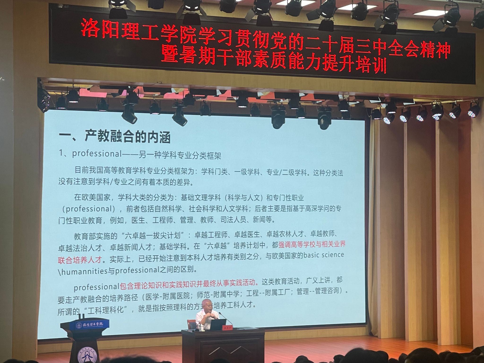在为期六天的培训中,中心干部们深入学习了党的二十届三中全会精神,进一步了解了国家政策和发展方向。通过聆听来自中国人民大学、华中科技大学等省外知名高校及河南省内教育管理部门专家的精彩讲座,干部们不仅拓宽了视野,同时也学到了解决各类实际难题的经验与方法。培训结束后,中心书记刘庆伟组织中心干部们围绕“党的二十届三中全会精神”“本科教育教学审核评估”、“科教融汇”、“国家安全观”等主要议题进行了深入研讨。