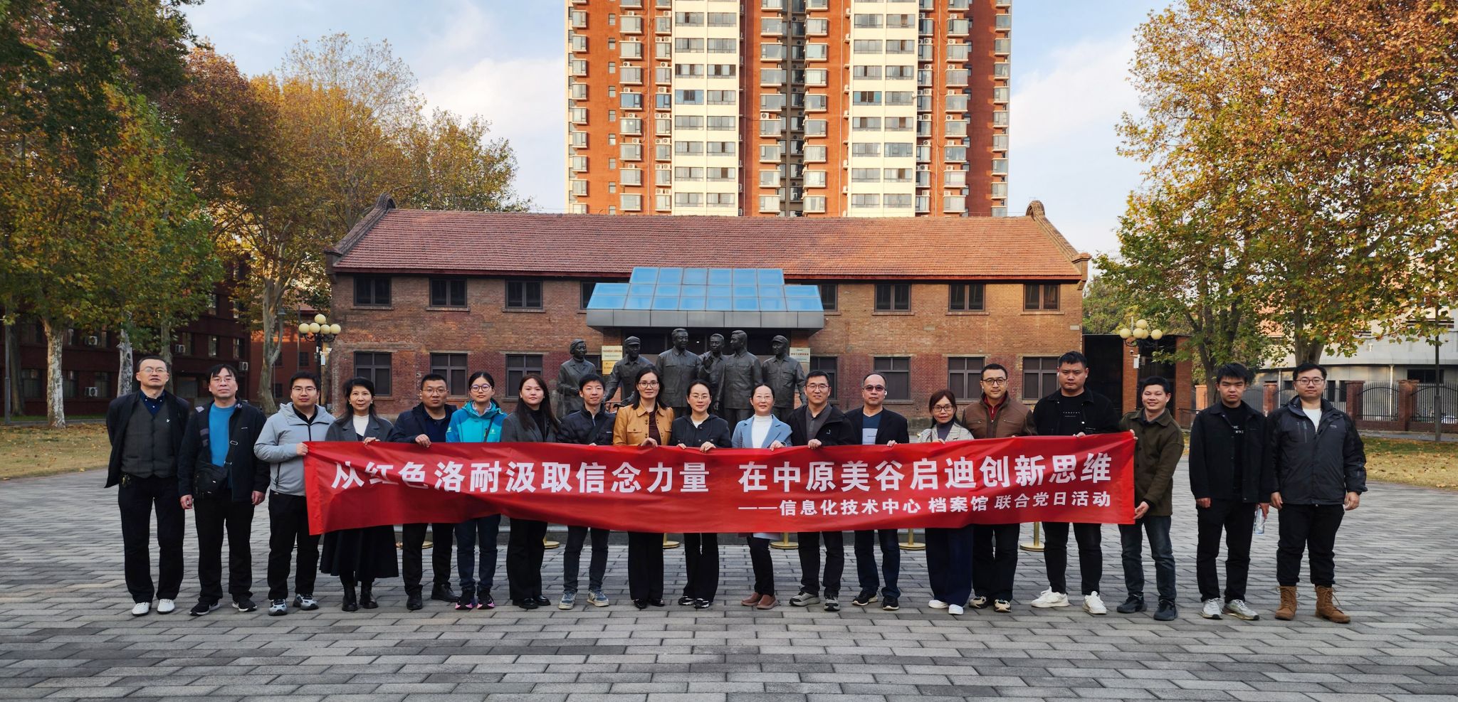 为践行党的二十届四中全会精神,11月13日,信息化技术中心直属党支部联合档案馆党支部共同开展了以“从红色洛耐汲取信念力量,在中原美谷启迪创新思维”为主题的党日活动,从历史信念中汲取力量,于发展实践中启迪新思。