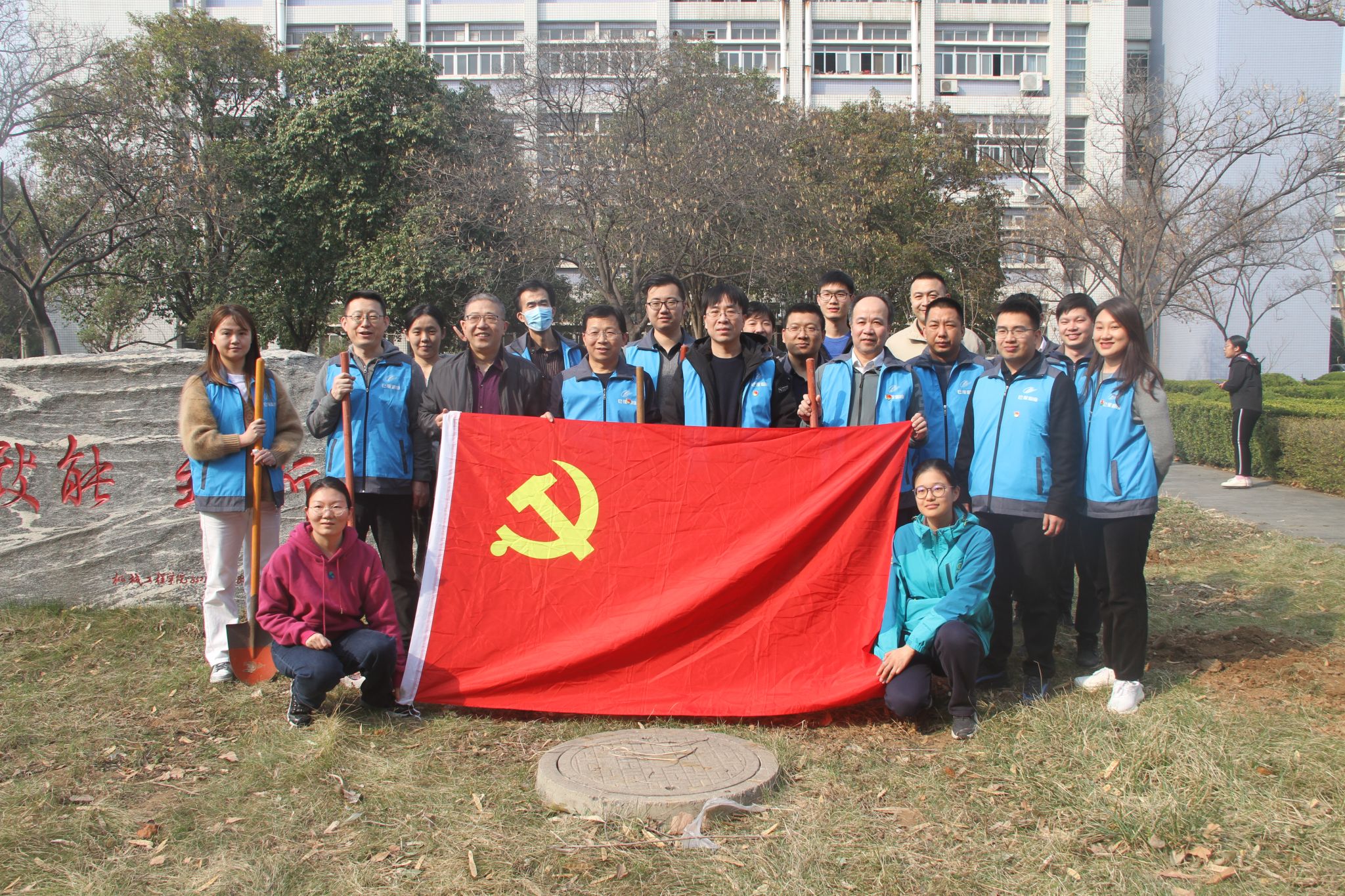 党员们充分发挥先锋模范作用,以身作则,以饱满的热情和实际行动,激励着每一位参与者。他们挥锹铲土,扶正树苗,填土踏实,确保每颗树苗都能茁壮成长。不仅展示了中心党支部的良好形象和积极风貌,也进一步增强了党支部的凝聚力和向心力。更为重要的是,它为校园的绿化建设注入了新的活力,成为一次充满生命力的党性教育实践。