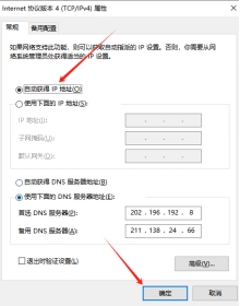 4. 双击打开“internet协议版本4(TCP/IPv4)”,点击自动获取IP地址,然后点击确定。
