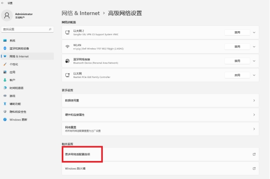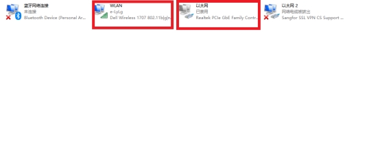 其中WLAN为无线网卡,可以看到我现在使用无线网卡连接的校园WIFI;以太网是有线网卡,我没有接入网线;校园网在宿舍是提供有线接口的;看下图
