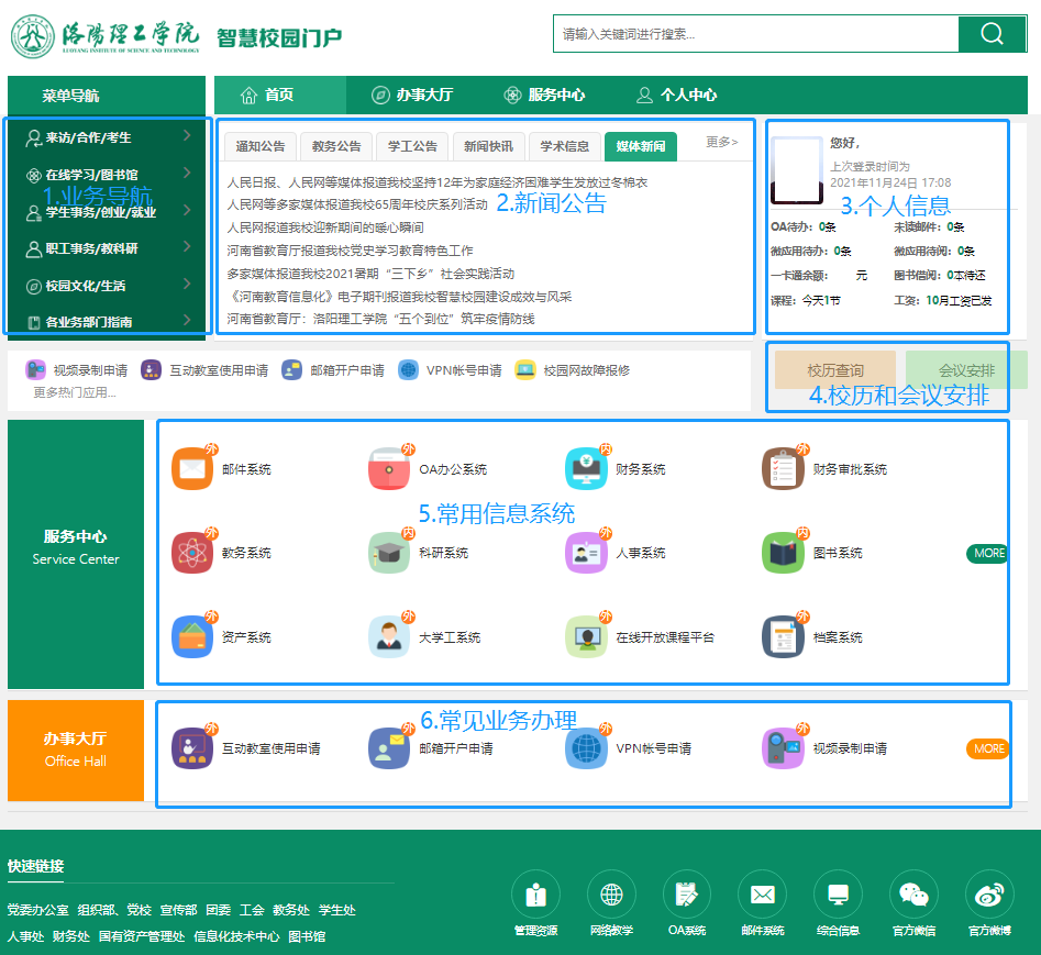 三、目前实现统一认证一次登录的系统包括OA系统、教务管理系统、财务信息系统、科研系统、图书管理系统、人事管理系统、大学工系统、国有资产系统、网站群管理系统、校园电子邮件系统、公寓电费自助缴费系统、数字校园等20余个信息系统。