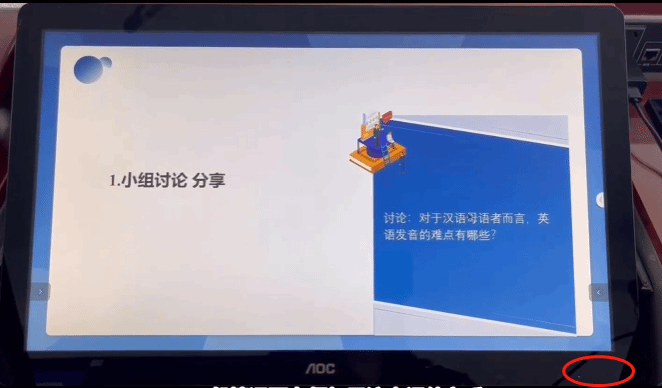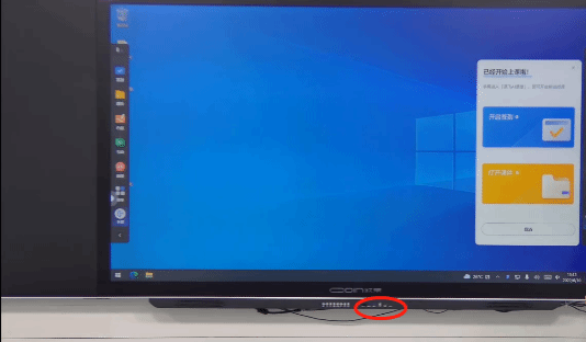 (2)智慧教室主控台电脑屏幕不亮需点击右下角开关或者用手紧一下屏幕下面的电源线即可解决,有的时间电源线松动也会引起屏幕不亮的问题。