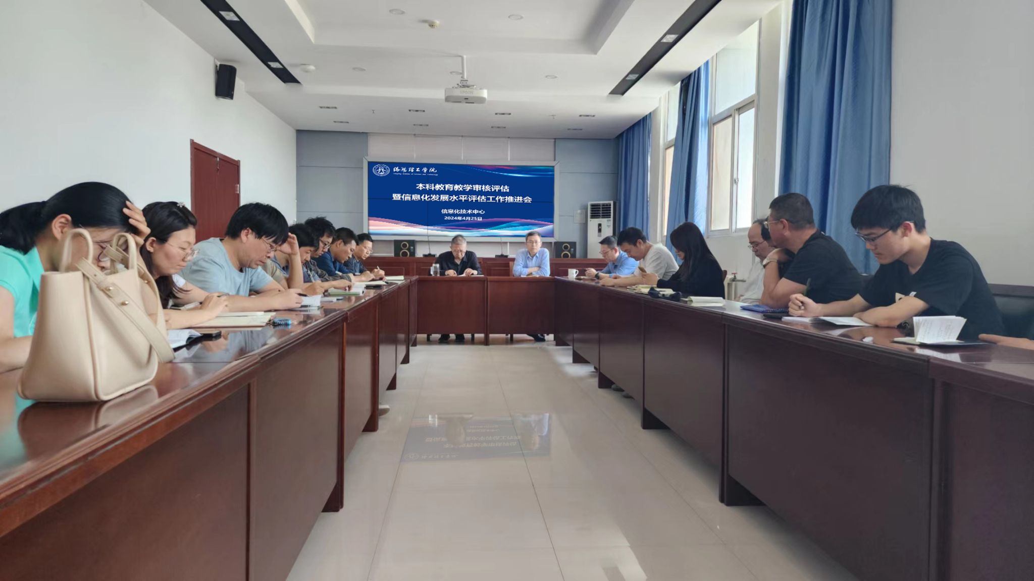 信息化发展水平,4月25日下午,信息化技术中心组织全体教职工在图书信息楼705室召开本科教育教学审核评估校内自评整改暨信息化发展水平评估工作推进会。会议由中心书记刘庆伟主持。