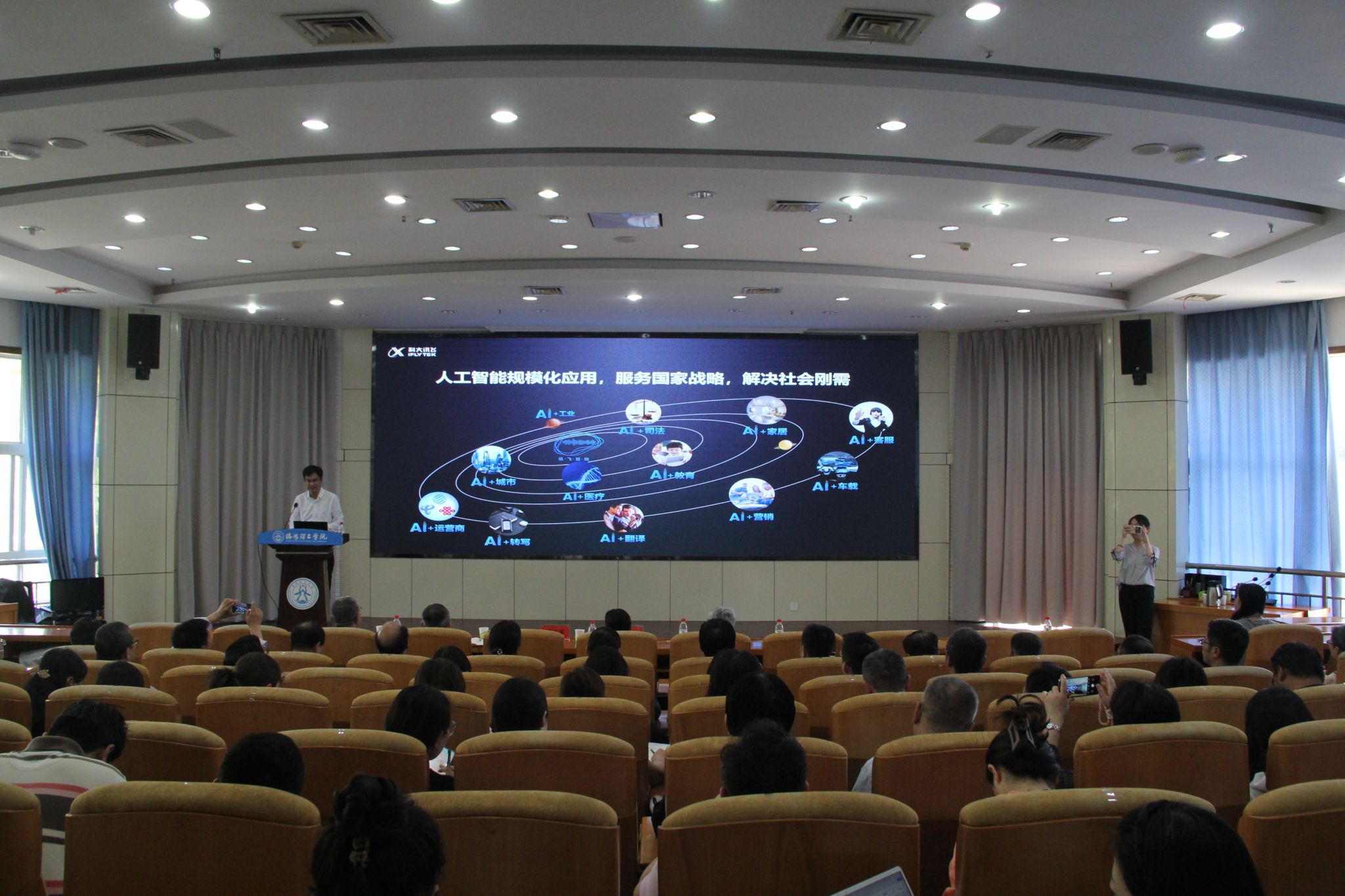 在王城校区办公楼二楼报告厅举办了教育数字化转型专题讲座暨智慧教室捐赠揭牌仪式。科大讯飞高教业务线总经理陈红斌受邀做了题为“人工智能助力高校教育数字化转型及高质量发展”的专题报告。美高梅娱乐场