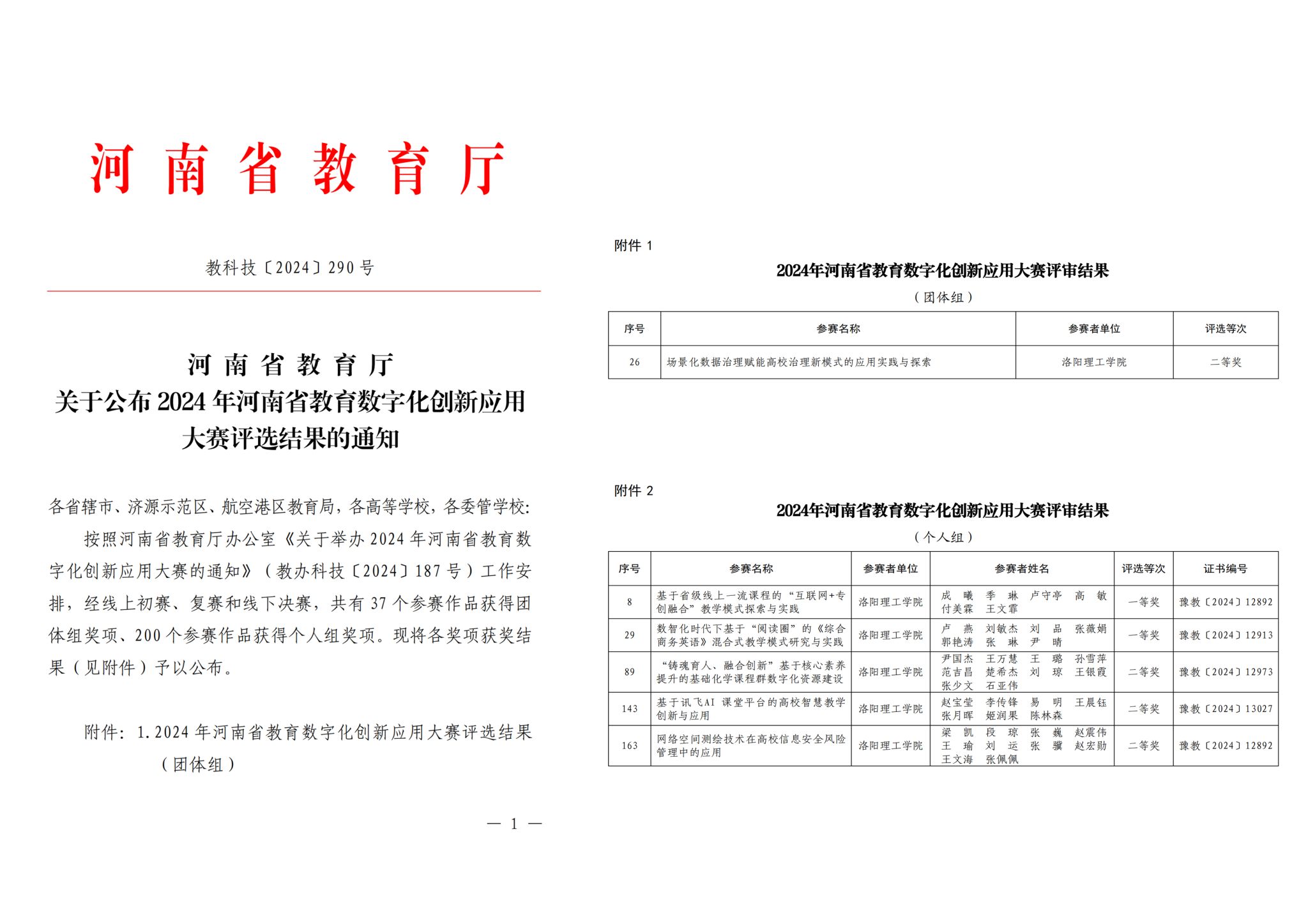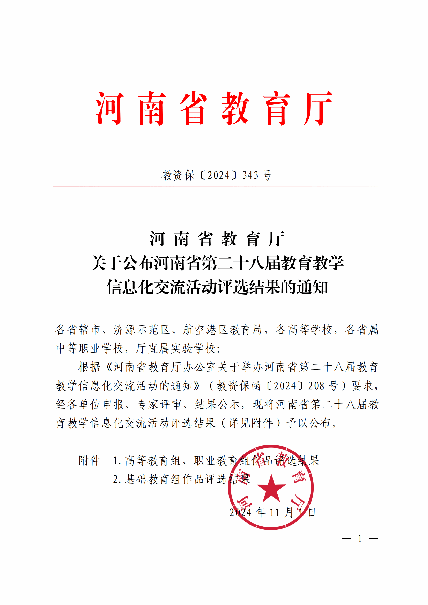近日,根据《河南省教育厅关于公布河南省第二十八届教育教学信息化交流活动评选结果的通知》(教资保〔2...