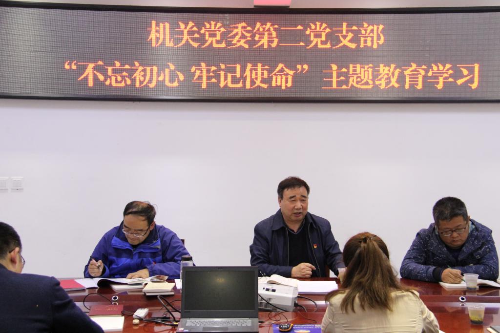 10月24日下午在大学生服务中心一楼106会议室,机关党委第二党支部召开“不忘初心、牢记使命”主题教育集中学习活动,支部全体党员参加,学习活动由支部书记张宽亮主持。