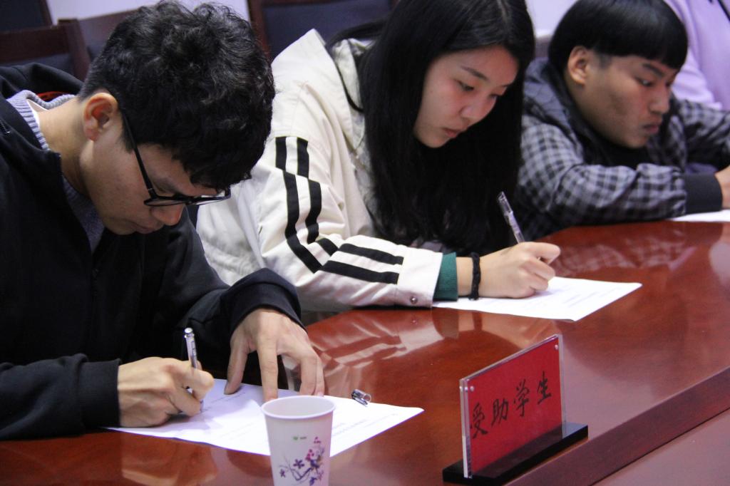 和全体学生工作人员对河南省学生安全救助基金会洛阳服务中心表示感谢,并对受助学生提出了希望和要求:一是要妥善使用资助资金,切实解决在校生活中的实际困难;二是作为当代大学生要正确对待困难,通过努力改善家庭状况,不断强大自我,早日成长成才;三是要懂得心怀感恩,将爱心传递下去,回报家庭、美高梅娱乐场
