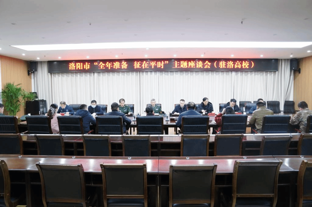 党委副书记、校工会主席曾涛及洛阳市7所高校武装部部长参加座谈会,座谈会由洛阳市征兵办副主任、军分区动员处谢风义处长主持。