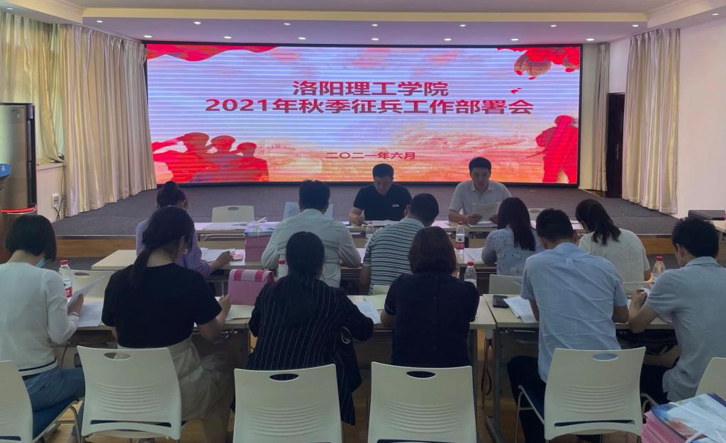 在王城校区情景剧场召开2021年秋季征兵工作部署会。校武装部部长刘湉湉、副部长李亚逊、校征兵办工作人员及各二级美高梅娱乐场