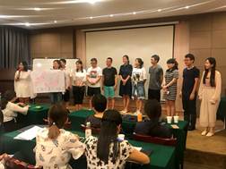 7月17日下午,培训班进行了辅导员团队建设活动,全班四组学员以组为单位进行了团队展示活动,并在展示活动后进行了阶段集中学习活动。在团队展示环节,各组学员经过充分讨论策划,在组长的带领下,走上讲台向大家介绍了团队名称、团队组成,通过展示团队口号、队歌等形式,反映了大家积极向上的学习态度和团结协作的团队精神。随后各组推选一名代表,做了学习交流,分享学习心得。