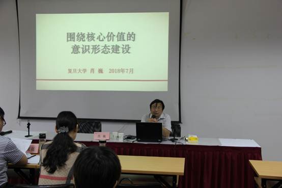 教授、博士生导师萧巍教授,进行了以《围绕核心价值的意识形态建设》为题的授课。肖老师是中央,马克思主义理论研究和建设工程专家;上海市政协委员;上海高校,思政课研究生教育指导委员会主任委员;上海市统战理论研究基地高级研究员;人权研究中心、统一战线基础理论研究中心等机构的高级研究员,他围绕核心价值、社会思潮、意识形态的由来,提出了核心价值有效“整合”意识形态,做好意识形态建设工作。讲座对在今后开展高校开展思想政治教育工作的过程中,如何重视核心价值引领,重视意识形态建设,提出了积极的建议,有重要的借鉴意义。