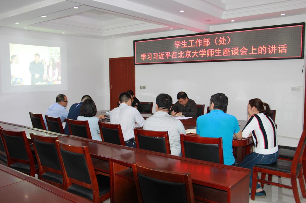 学生工作部部长张宽亮首先介绍了习近平总书记在5月2日北京大学师生座谈会上的讲话情况,总书记非常重视高校学生培养工作,重视师德师风建设,希望教育工作者要将教书育人同自我修养提升紧密结合;总书记面向青年学生提出了具体要求,实际上也为未来一个时期大学生思想政治教育工作指明了方向、廓清了思路,总书记的讲话是对高校怎样培养人和培养什么样的人的高度重视,学生工作队伍要加强政治理论学习,提高政治站位、主动担当担责,在深入学习、认真领会,总结提炼的基础上,以总书记讲话精神为指引,扎实做好新形势下学生思想政治教育工作。