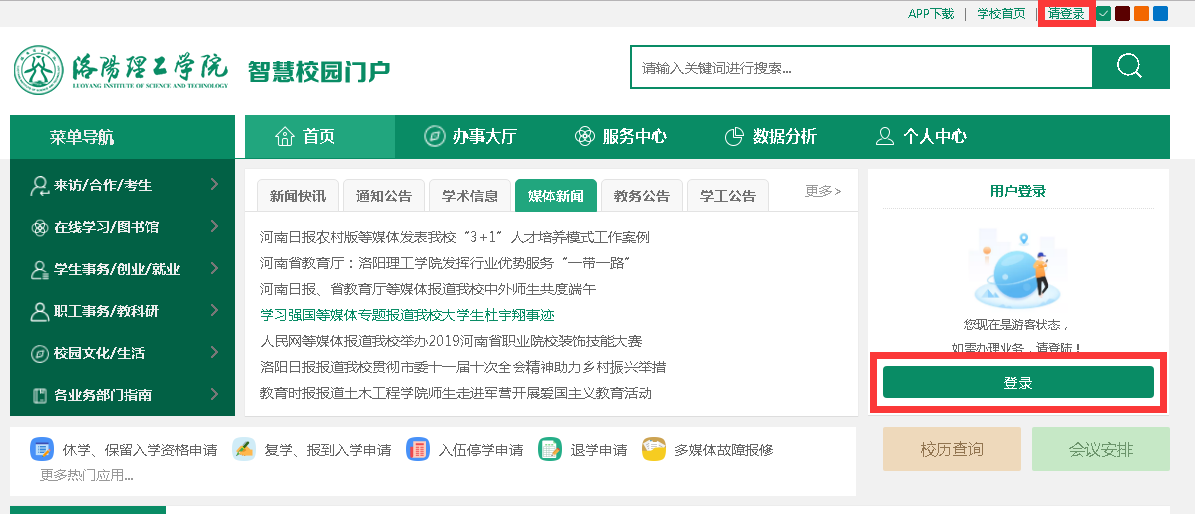 2.点击信息门户主页的用户登录