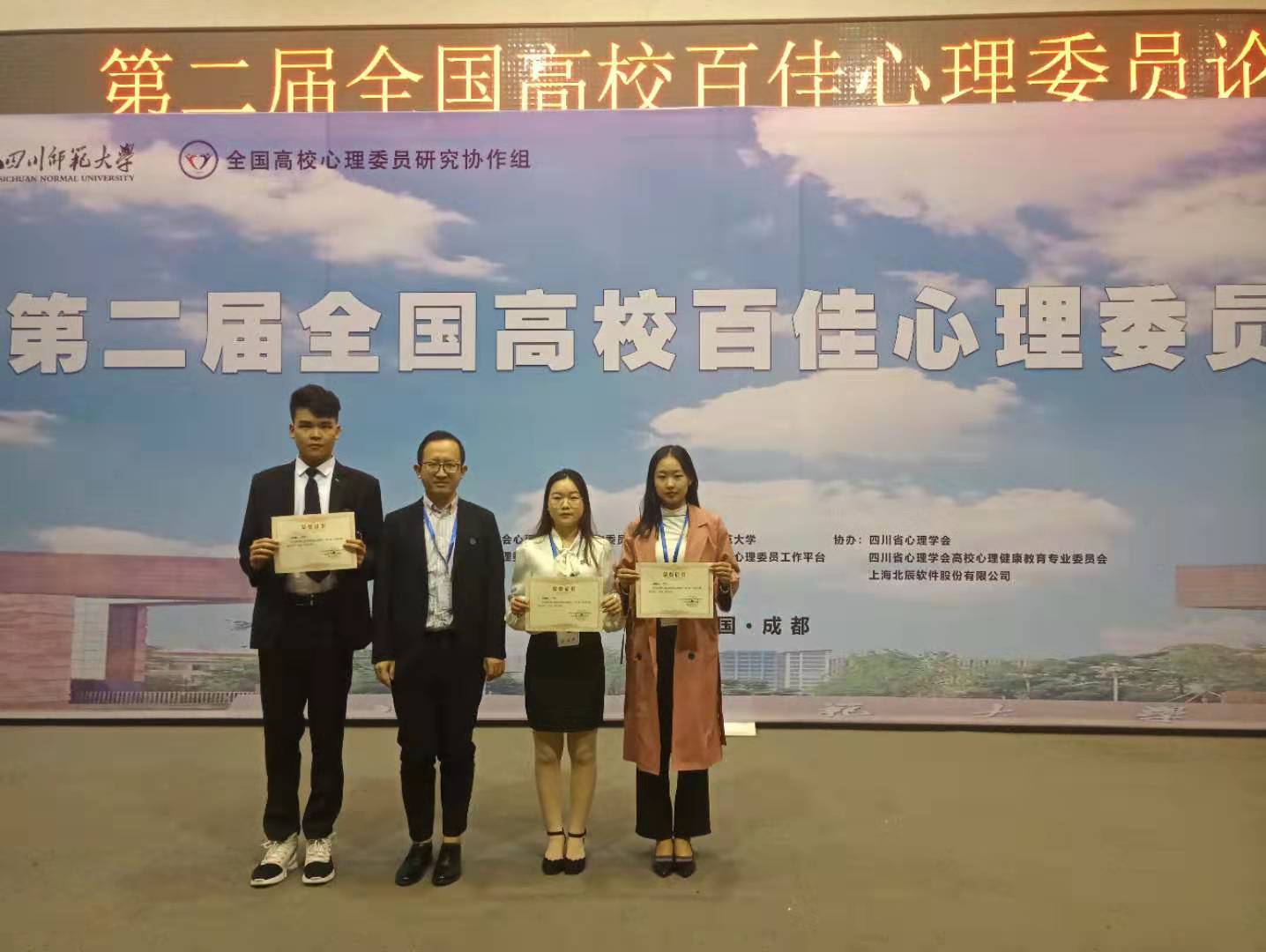 孙萧飞荣获第二届“全国百佳心理委员”荣誉称号。