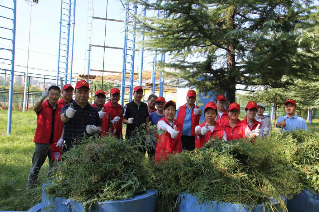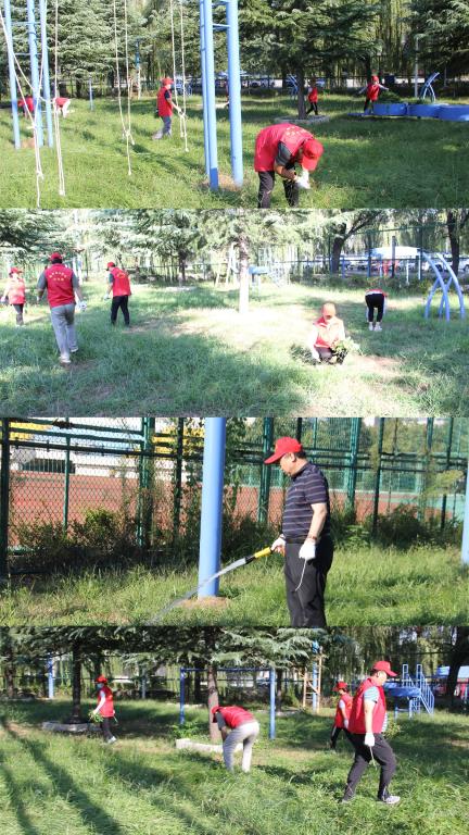 创建全国文明校园工作要求,机关党委第二党支部组织开展“美化环境 清洁校园”专项行动,在王城校区心理健康教育中心素质拓展基地进行除杂草义务劳动。