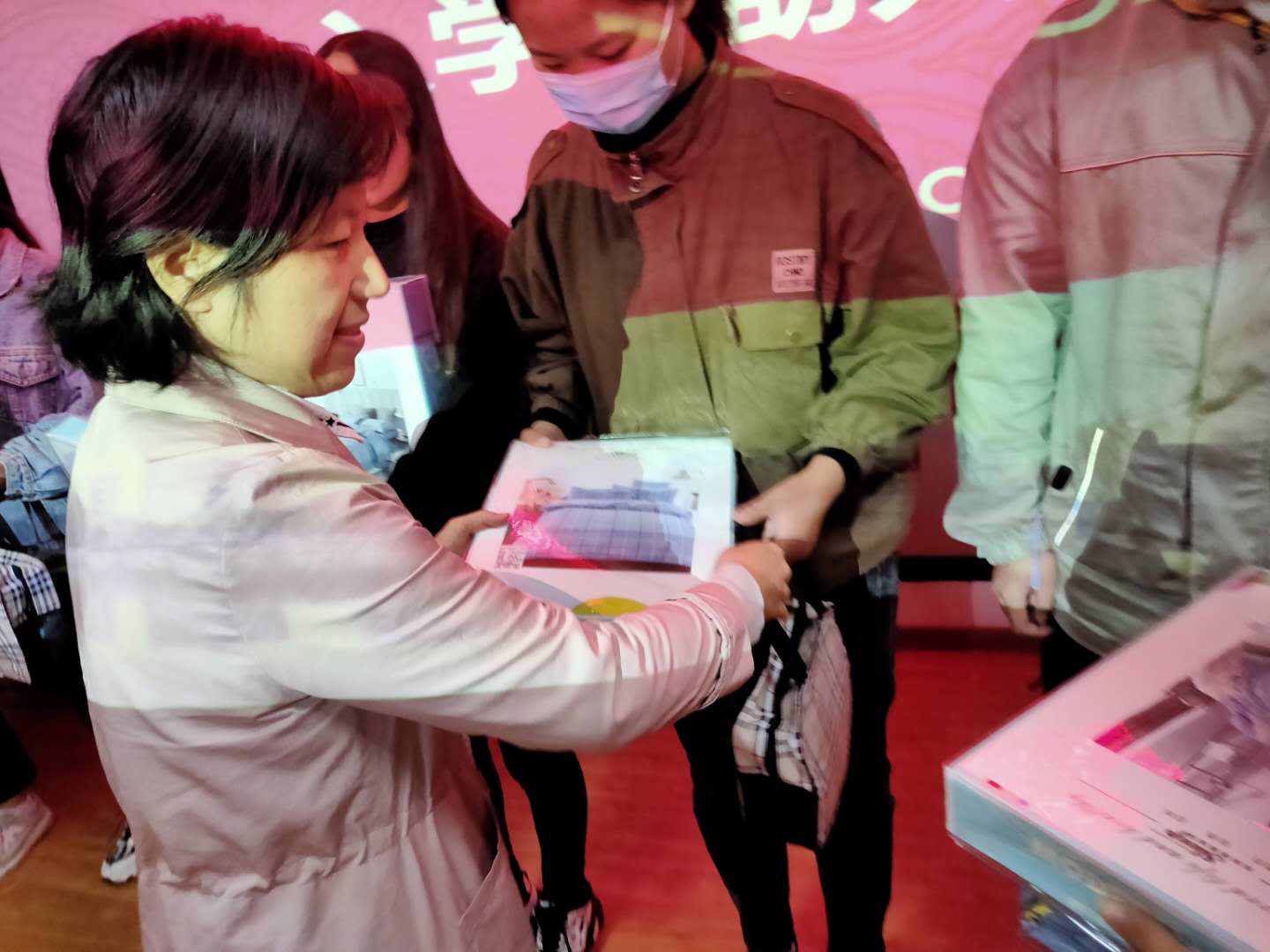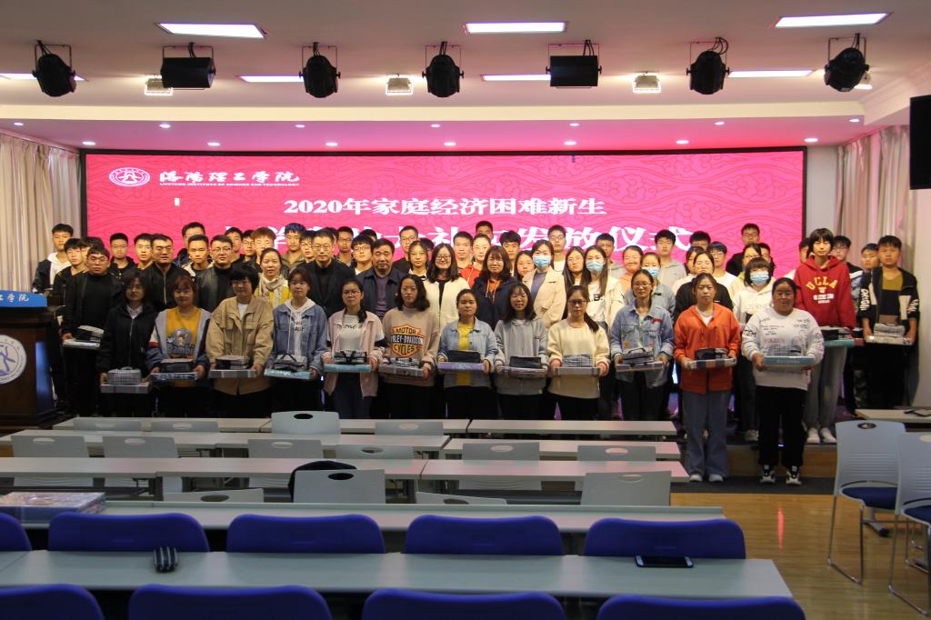 新生辅导员以及124名2020级家庭经济困难新生参加了入学大礼包发放仪式。