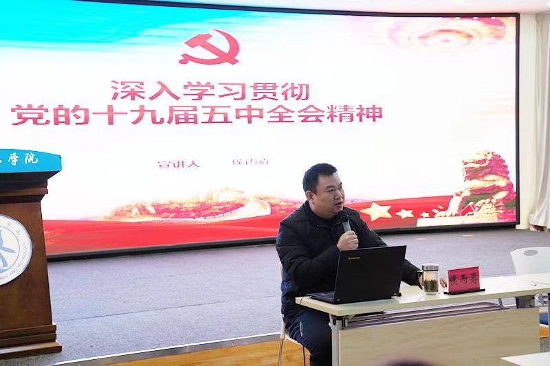副院长侯丙孬副教授侯院长以《深入学习贯彻党的十九届五中全会精神》为题进行本次培训的第一讲。侯院长的讲解让辅导员老师们对五中全会精神有了更为深刻全面的认识和理解,对十四五期间的重大战略部署有了更加清晰地把握。