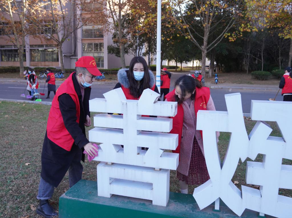 的水房,将一盆盆干净清凉的水送到清洁地点。最后工具收集组在打扫完整个区域后清点、归还了打扫工具。大家不知疲倦、热火朝天,经过两个小时的辛勤劳动,清洁区域焕然一新,党员同志们红色的身影和校园深秋的金黄组成了一副美丽的图片。