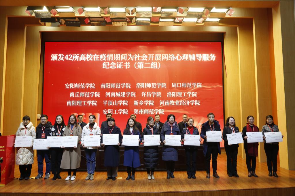 开幕式上,与会领导为疫情期间面向社会开展网络心理疏导服务的42所高校颁发纪念证书,美高梅娱乐场