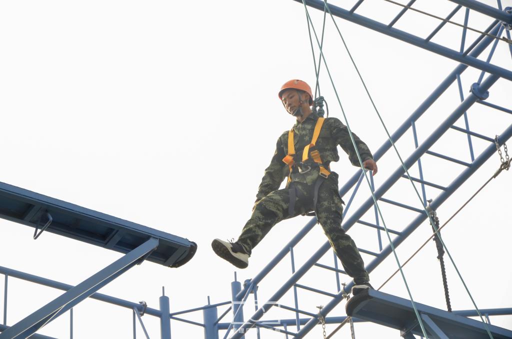 首先,学生工作处处长张宽亮致辞,他希望全体参训学员能够突破心理舒适区、敢于超越自我、勇于拼搏,在训练过程中能够服从教练指挥,团结协作、凝心聚力,最终会学有所获。随后,在主教练的带领下,全体参训学员精神抖擞、激情洋溢,他们团结一致完成了“挑战NO.1”、“众志成城”、“生死电网”和“毕业墙”等项目,提高了团队凝聚力和战斗力。部分学员挑战了“高空断桥”和“攀岩墙”等项目,实现了自我突破,增强了自信心和战胜困难的勇气。训练期间,学员在不断地挑战中完成一个又一个项目,突破了自我,激发了潜能。