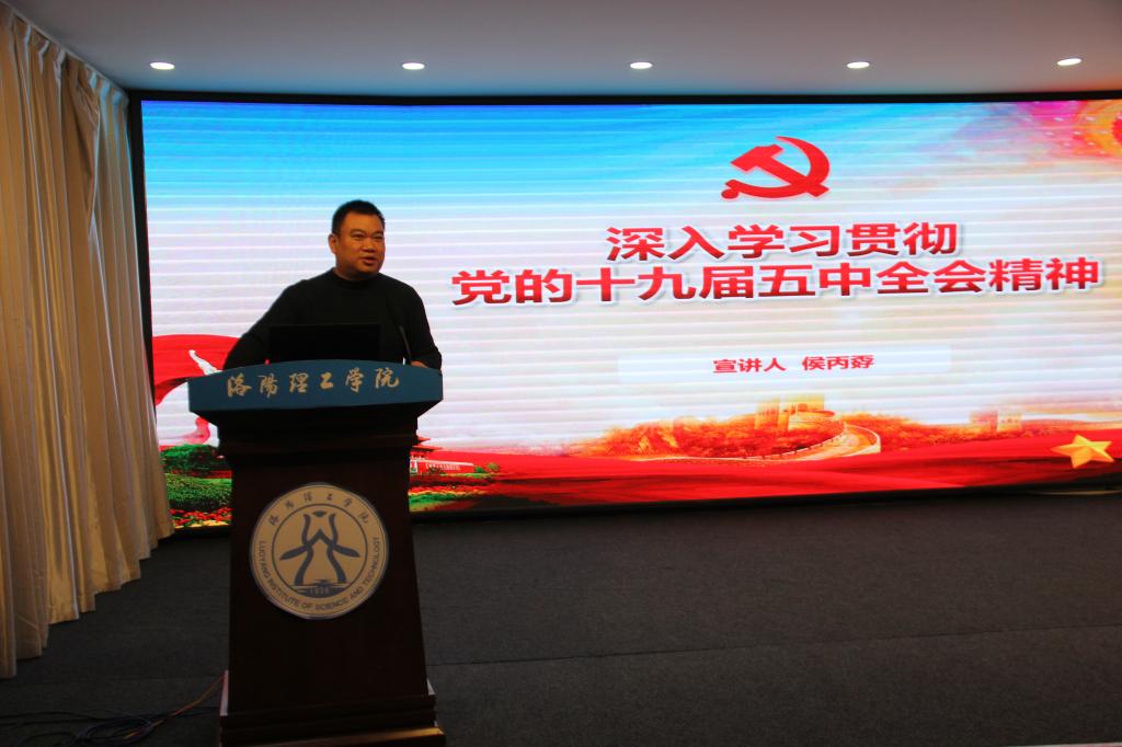 副院长侯丙孬副教授,为学工队伍作“十九届五中全会”学习辅导。侯院长从“深刻认识我国进入新发展阶段的重大意义,有利条件和重要特征。”、“准确把握2035年远景目标和‘十四五’时期我国发展的指导方针、主要目标、重点任务。”、“牢牢把握构建新发展格局的战略构想和重要着力点。”和“坚持党的全面领导,动员各方面力量,为实现‘十四五’规划和2035年远景目标而团结奋斗。”四个方面对全体学工队伍进行了讲解辅导。