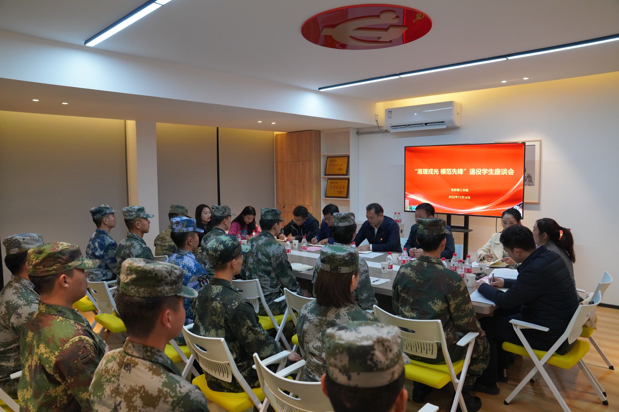 “洛理戎光 模范先锋”退役学生座谈会在王城校区致实书院举行。校长张锐、学工部、武装部、团委等相关部门负责人和二级美高梅娱乐场