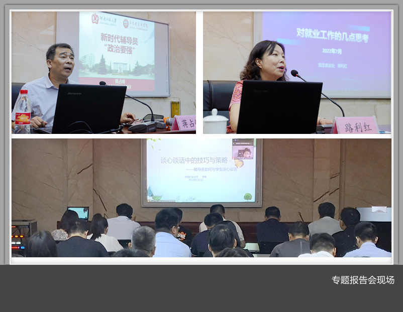 招生就业处处长路利红分别以《不忘初心,铸魂育人》、《“三全育人”视角下高校辅导员角色定位》、《新时代的辅导员政治要强》、《谈心谈话中的技巧与策略及辅导员职业能力大赛经验分享》和《对就业工作的几点思考》为题作了专题报告。在案例研讨环节,培训班分两组,开展了资助育人工作研讨交流、学生工作案例经验分享等活动;在现场教学环节,全体学员在回龙壁挂公路、史来贺纪念馆进行了参观学习,重温了入党誓词,感受当代“愚公”精神,传承红色基因。通过此次培训活动,学员们拓宽了思维,提升了政治素质和党性修养,增强了履职尽责能力。