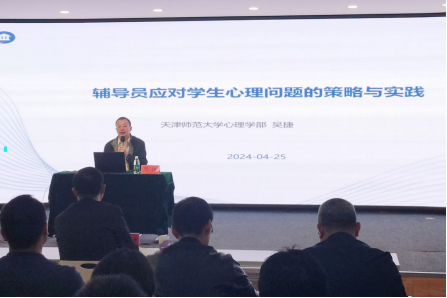 天津师范大学心理学部教授、博士生导师吴捷作《辅导员应对学生心理问题的策略与实践》专题报告