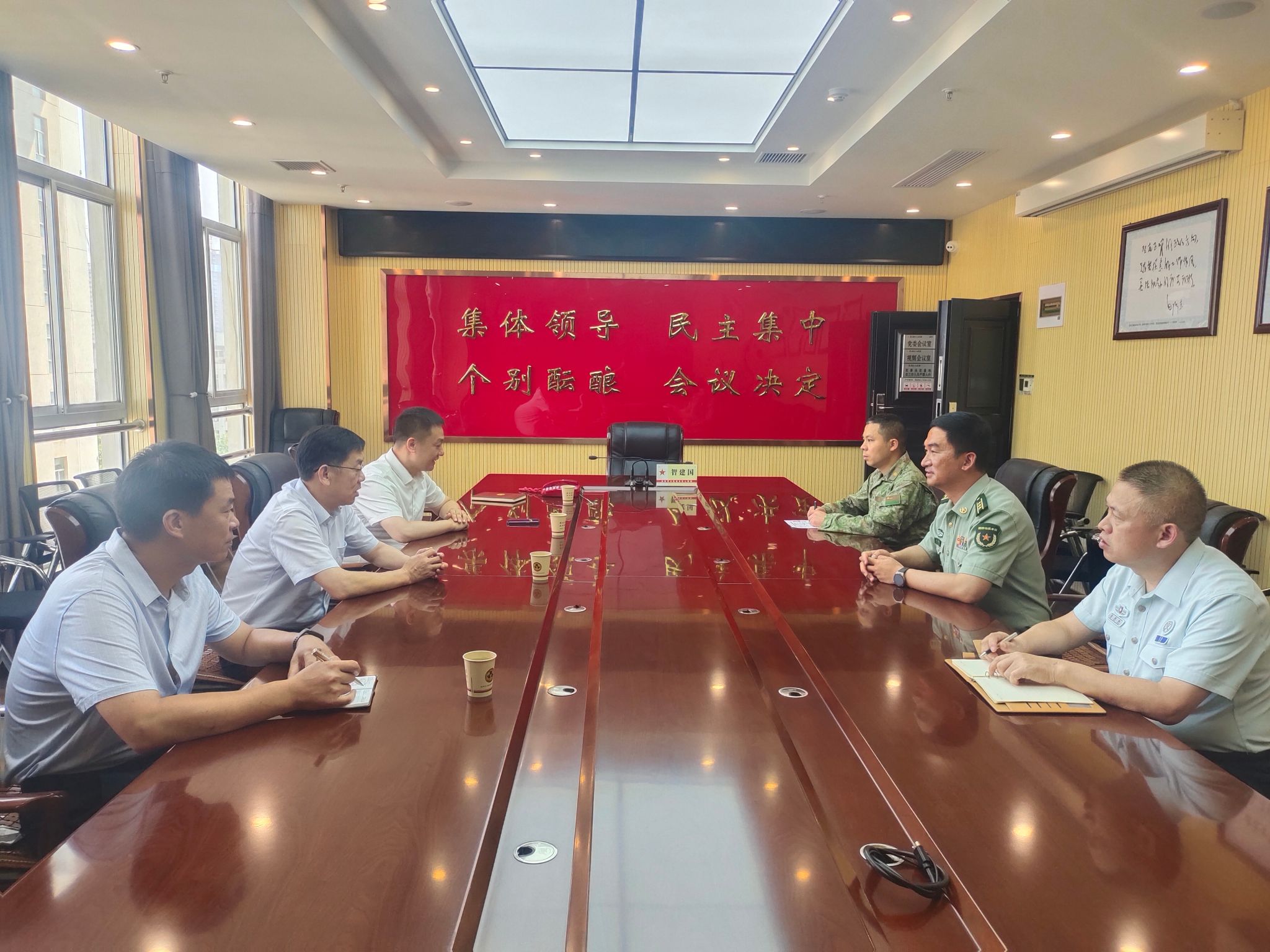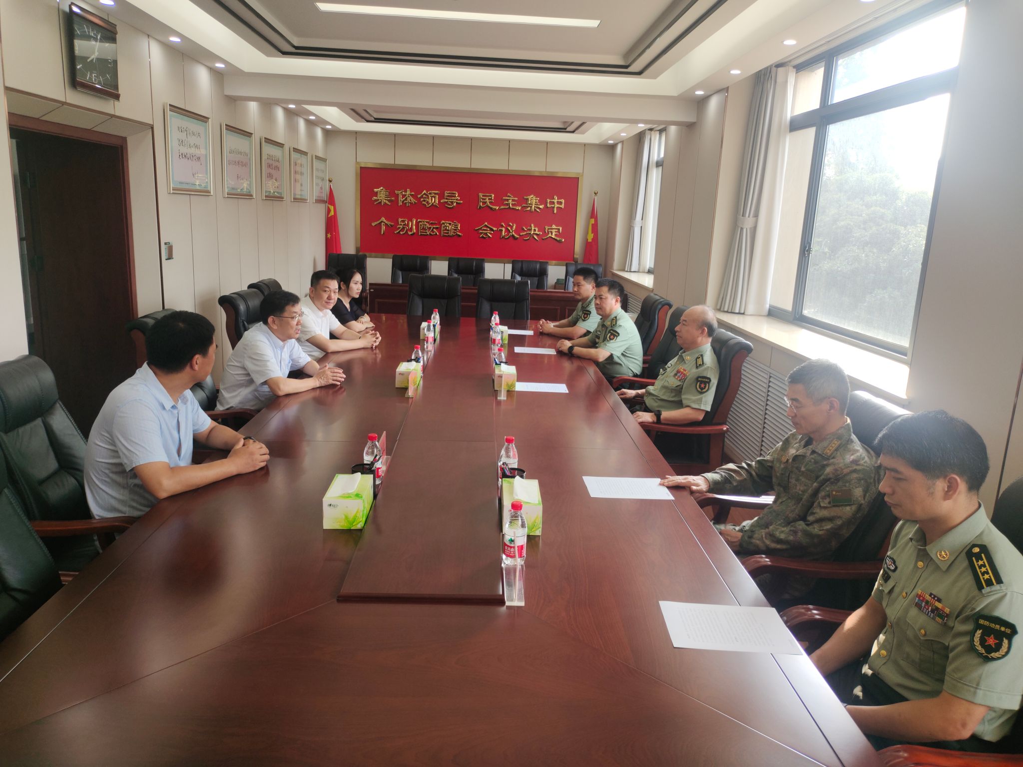 在中国人民解放军建军96周年来临之际,为进一步扎实做好“八一”期间拥军优属工作, 7月26日,副书记胡恩立带领武装部相关负责同志一行分别赴洛阳军分区、驻洛某部、洛龙区人武部等单位进行慰问走访,并同洛阳军分区政委李杏、副司令员王更军等进行座谈。
